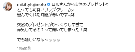 インスタグラムを更新して投稿したのは、夫の庄司さんからプレゼントされたというオシャレなリップバーム。