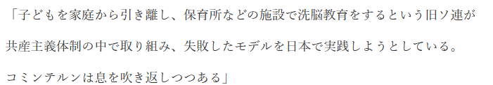 保育所と共産主義を結び付け、洗脳教育をするものと決めつけた発言をしていたのです。