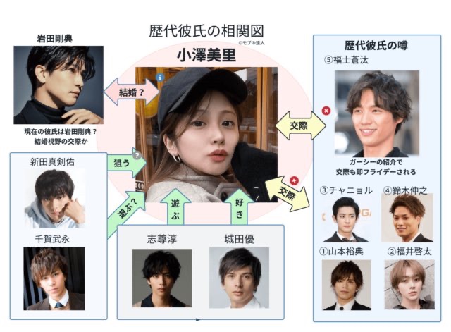 海が見える部屋で手を上げた最新ショットを披露しています。小澤は、暴露系動画の投稿者で、元参議院議員の“ガーシー”こと東谷義和容疑者に、俳優の福士蒼汰や山本裕典、三代目J Soul Brothers from EXILE TRIBEの岩田剛典、劇団EXILEの鈴木伸之と交際していたことが大きな話題となっていました。