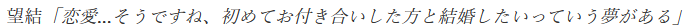 具体的には母親の結婚と同じ24歳で結婚したい憧れを口にしました。