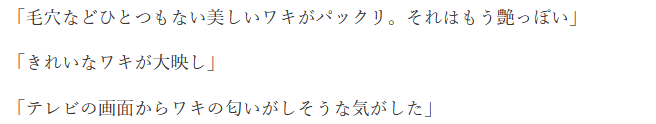 テレビカメラを前に腕を上げてワキが全開になることはそうそうないですからね。