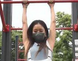 4Kの今の時代、毛穴が全部見えるのを危惧して嫌々ながら鉄棒にぶら下がりました。