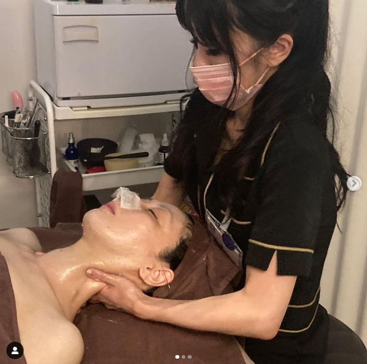 デコルテから首まわりをマッサージされている様子です!すっぴんの素顔とハリのあるデコルテがとても美しいですね!もちろんこれにはネット上でも称賛の声が飛び交いました!