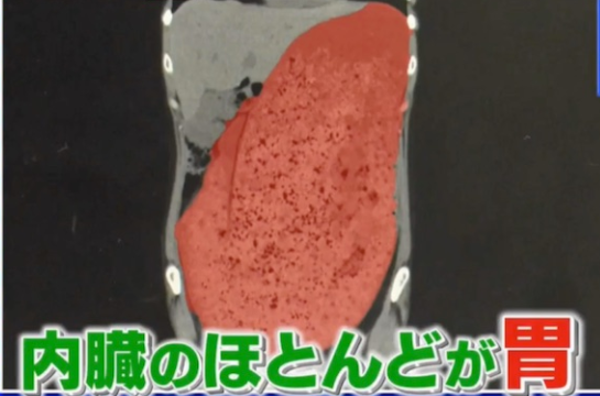 番組では、お寿司を160貫食べた後のもえあずのCTスキャン画像を大公開。