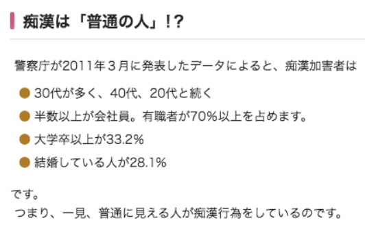一般社団法人・痴漢抑止活動センター代表の松永さんは、痴漢被害にあうと怯えて動けなくなることに触れ、どういう風に声を上げればいいのか、加害者が逃げやすく他の乗客から死角となりやすい痴漢被害発生場所をあげ、具体的な回避・対処法を紹介しています。