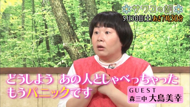 エッセイスト・阿川佐和子さんのトーク番組「サワコの朝」(MBS・TBS系、土曜午前7時半)5月30日放送回に、お笑いトリオ「森三中」の大島美幸さんが出演しました。