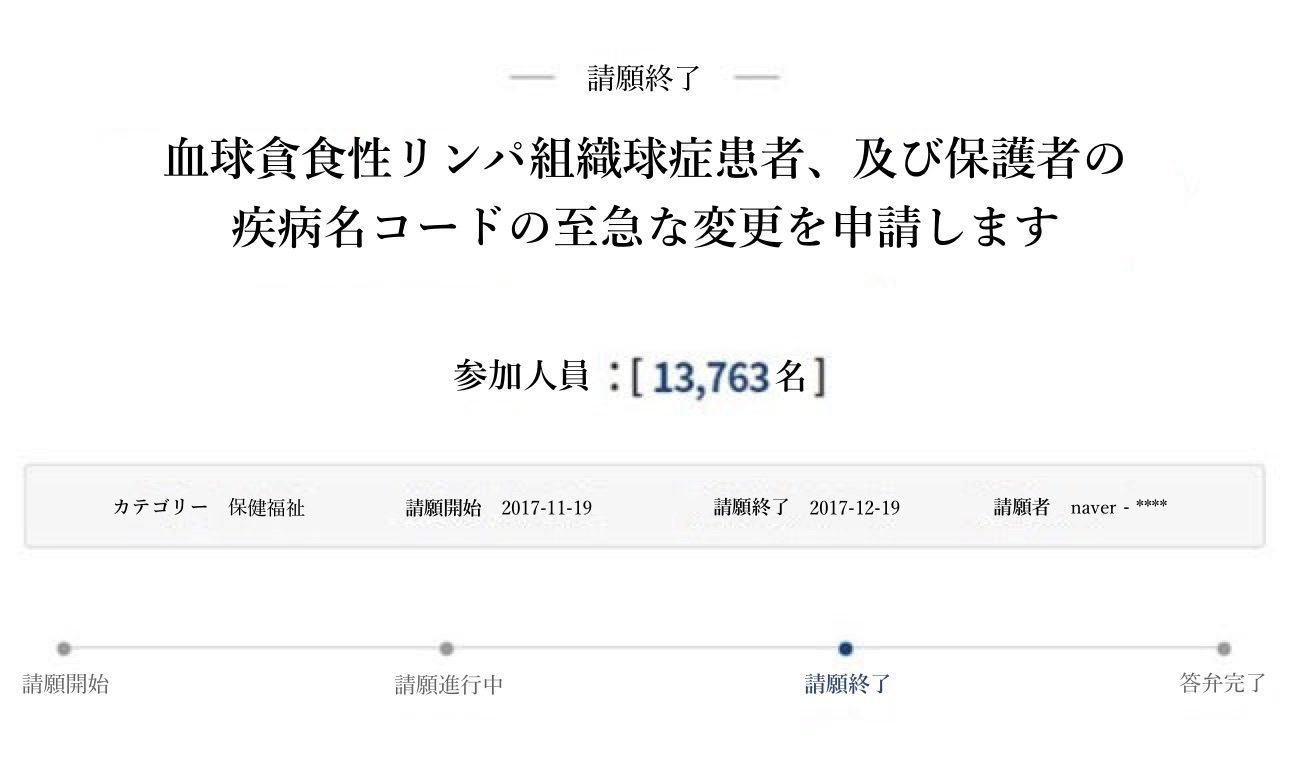 その請願の内容は、「血球貪食性リンパ組織球症」の疾病コードを変えてほしいという趣旨の文章でした。