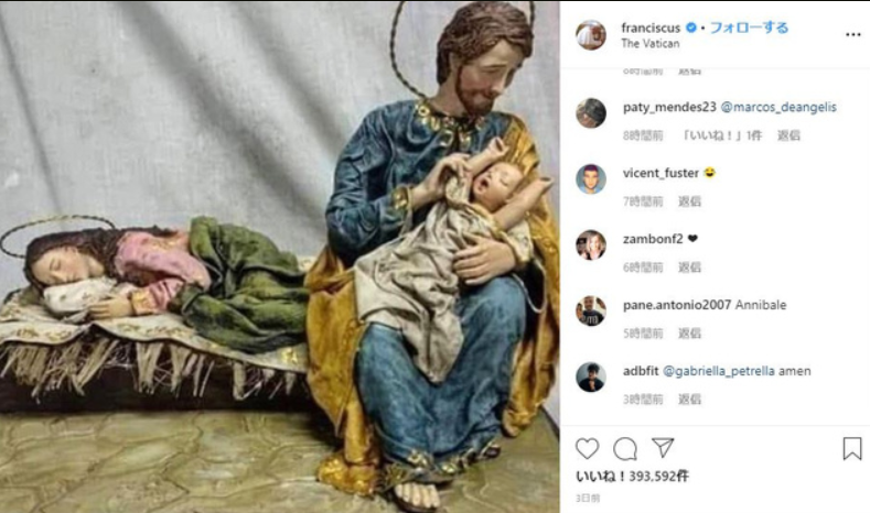 以前にも ローマ・カトリック教会のフランシスコ教皇が、自身のインスタグラムに、聖母マリアが眠る隣で夫ヨセフが生まれたばかりのイエス・キリストをあやす画像と共に「お母さんを休ませて」とつづった投稿が、世界で話題になっていました。男性に対しても、もっと育児に参加しようと呼びかけたと受け止められており、共感が広がっているそうです。