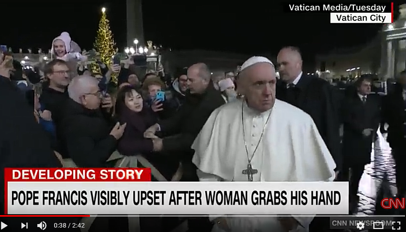 ローマ・カトリック教会のフランシスコ教皇が以前、年末の夜にバチカンのサンピエトロ広場に来ていた女性の手を叩いたといいます。 このハプニングは 米国CNNニュースでも報道されました。