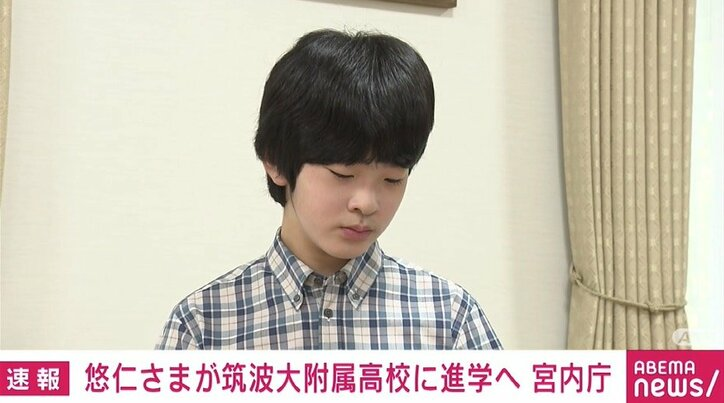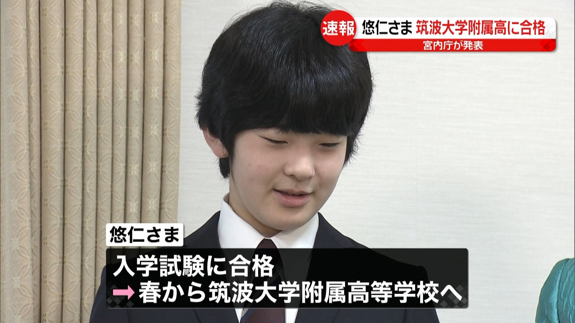 宮内庁は、秋篠宮家の長男の悠仁さまが国立の筑波大学付属高校に合格し、4月に入学されると発表しました。