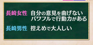 現地の男女に話を聞いてみると、女性からは「浮気をしたことがある」、男性からは「浮気をされたことがある」という回答が多く見られました。男女とも「長崎の女性ははっきりとした意見を持っていてパワフル、男性は控えめで大人しい」という傾向があることを自覚しているようです。