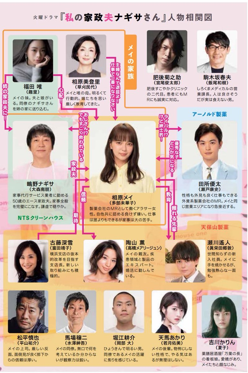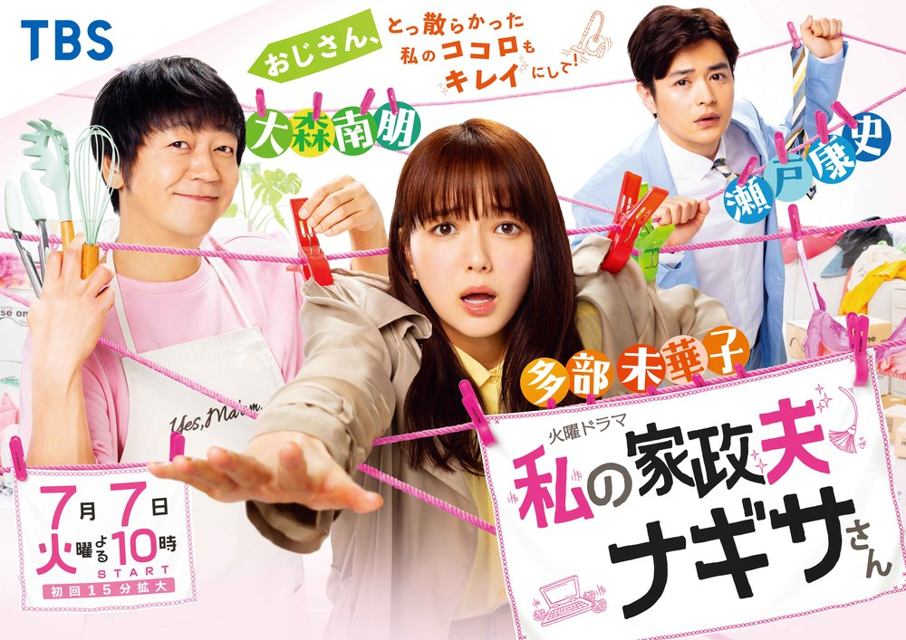 同作は、仕事は できるものの 家事と恋は 不器用な 28歳の独身女性・相原メイ(多部)が主人公のハートフルラブコメディー。ある日、妹の福田唯(趣里)が、誕生日プレゼントとして おじさんスーパー家政夫・鴫野ナギサ(大森南朋)を雇ってきたことから、メイとナギサの奇妙な関係が 始まっていく展開だそうです。