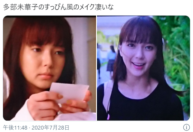 《多部ちゃんかなりメーク濃いよね すっぴん風?になると全然違う》