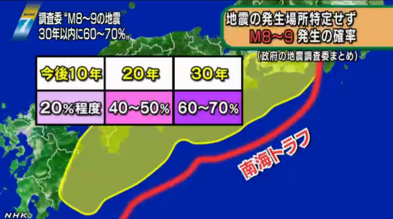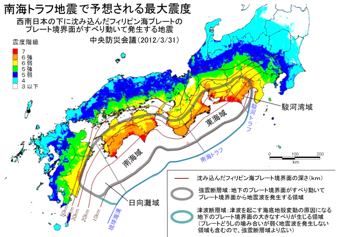 さらに厄介な事に、この南海地震に誘発されて他の地域でも巨大地震が起こる可能性が指摘されており、東海地方の相模湾沖から関東にかけての広い範囲を震源とする、東海地震も誘発される可能性があると考えられています。