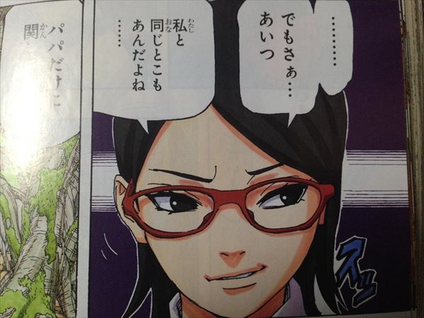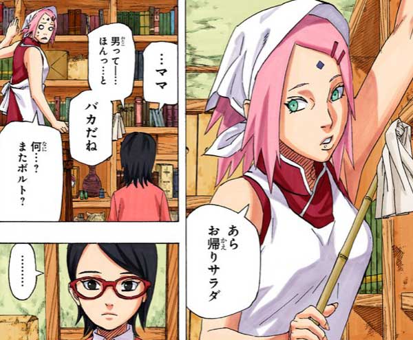 サスケはずっと旅をしているようです。サラダはボルトと同じように父親に不満があり「パパだけに関してはちょーしゃーんなろー」と言います。