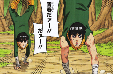 木ノ葉の里一の松岡修造。熱い根性・言動・性格の赴くまま永久に青春を謳歌する濃厚な忍者で、自身を「木ノ葉の気高き碧い猛獣」としています。