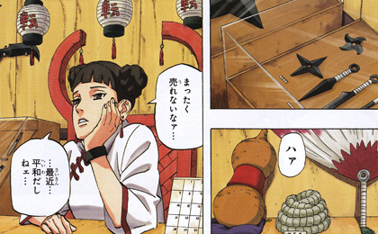 武器使いで世話好きな性格で、たびたび無茶をするリーの面倒とネジの修行相手をよくしているみたいです。