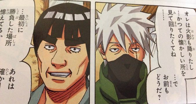 六代目火影を降りたカカシは旅を始めるようです。その旅にガイを誘っているみたいです。この二人は独身なのでしょう。