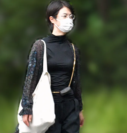 ただ、トップスのスリーブはシースルー素材のため、どこか涼しげな雰囲気を出しています。また、約7万円ほどする高級ブランド『セリーヌ』のリップスティックケースを斜めがけしているところもおしゃれに気を使っていることがうかがえます。