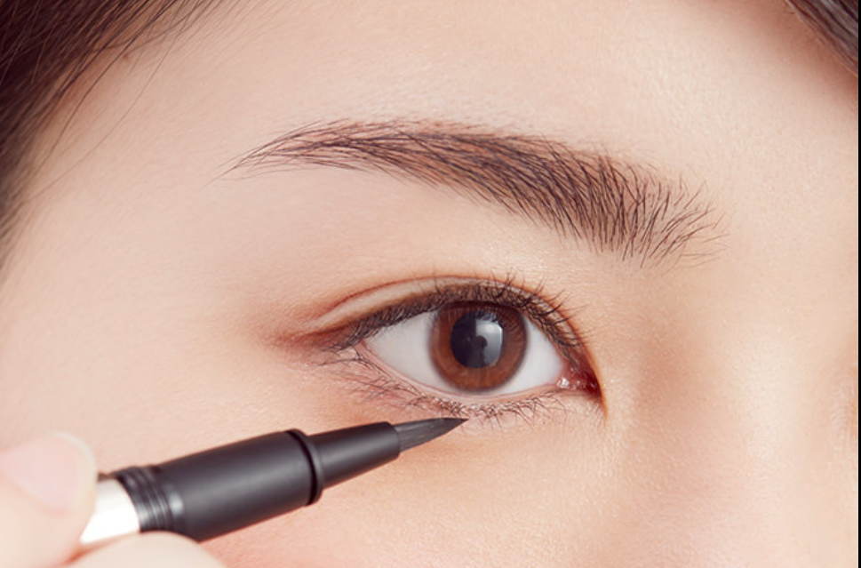 アイシャドウを塗り終えたら最重要とも言えるアイラインを引きます。ナチュラルに仕上げるのであれば、ハッキリとしたラインを引くのではなく、ぼかす感じにしてください。目元を強調しすぎてしまうとナチュラルっぽさがなくなり、強い印象を与えてしまうからです。色はアイシャドウと同じ系統の色を選ぶのがコツです。また、アイラインは上まぶただけにするようにしましょう。下まぶたの方にもアイラインを引くと目元が強くなってしまうので注意です。また、アイラインを引く際には片方の指でまぶたを上げると上手く引くことができます。