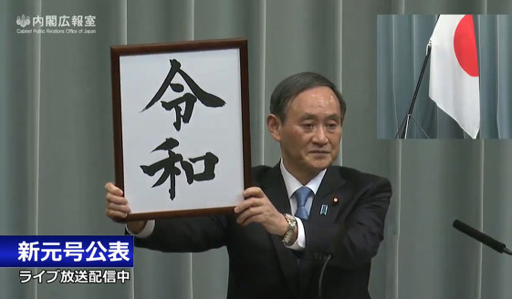 2019年4月1日、菅義偉官房長官が首相官邸で行った記者会見で、「平成」に代わる新元号を「令和(れいわ)」と発表しました。