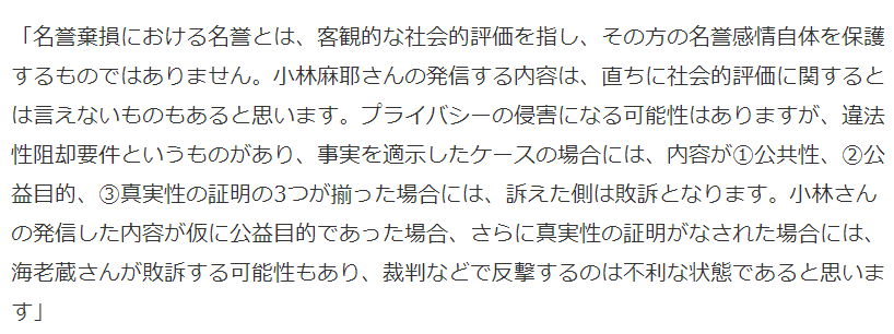 麻耶さんは謝罪してきた海老蔵さんについても、”条件”を提示し許すか決めていくとブログで明かしていますが、海老蔵さんが何もリアクションを一切していないのが疑問に残ります。この件についてある弁護士はこのように話します。