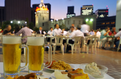 実際にその場を訪れた方の話によると、「店の前に広がる芝生のスペースに、180席ほどの瀟洒なテントつきベンチが設置され、ビールやカクテルが提供されていた。席の多くは“ノーマスク”の外国人で埋まっており、そこかしこで乾杯している――。」とのことです。
