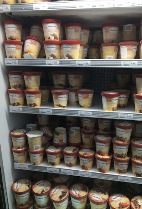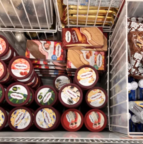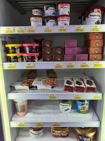掲示物には、大半がコンビニで見られる冷凍食品コーナーの姿が含まれています。この冷凍食品コーナーにはハーゲンダーズ、ディアトゥ、ググクラスターなど多少高価ブランドのアイスクリームが陳列されています。