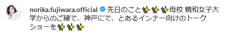 10月11日、母校でトークショーを行ったことをインスタグラムで報告しました。