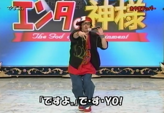 「『ですよ。』ですYO〜!」「あ〜い、とぅいまてぇ〜ん!」と続き、「YO!YO!ですYO!、YO!YO!ですYO!」「『ですよ。』の最近は、あやまることばっか。」「今日も昨日も一昨日もあやまることいっぱ〜い。そ〜いうこと〜。」というギャグでヒットした芸人です。