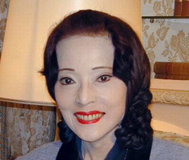 1990年代後半には、その異様に白塗りした仮面のような顔と、テレビ番組出演の際に顔だけ集中的に照明で照らすという演出方法により、「美白の女王」としても一世を風靡しました。