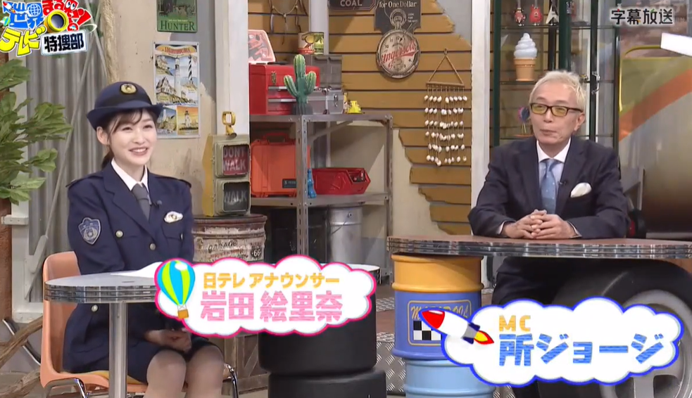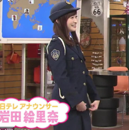 アシスタント役を務めた岩田アナは婦人警官のコスプレ姿で登場。スカートが膝上10センチ丈ほどの短いタイプで、美脚を披露ながらの進行でファンを喜ばせました。
