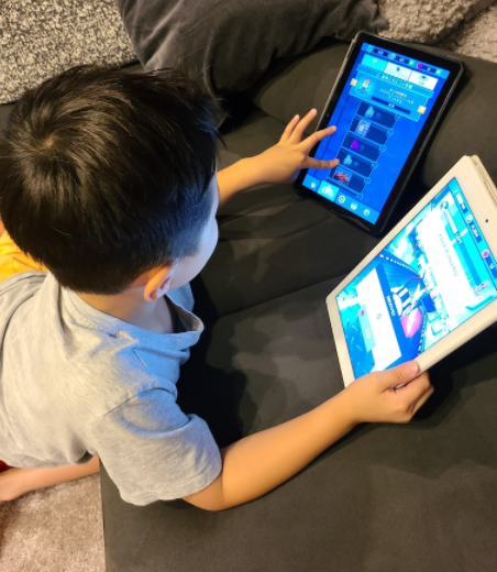 この日、「器用」と題したエントリーを投稿した小原さん。タブレットを2つ並べて同時にゲームで遊んでいる長男の姿を公開。「ご褒美タイム なぜなら英検三級 一次試験合格ーー!!!」と長男の英語検定試験の合格を明かしています。