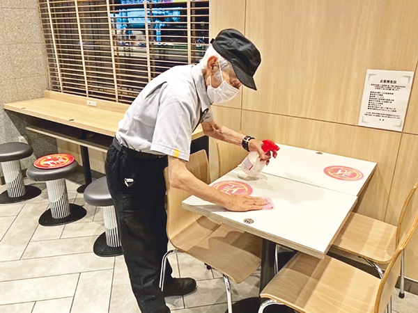 井本恭兵店長(36)は「店舗の清潔さが高いレベルで維持され、朝シフトに向けた準備もスムーズ。縁の下の力持ち的な存在」と太鼓判を押す働きっぷりです。週4で夜勤5時間をこなしています。仕事内容は客席の清掃や下ごしらえなどを担当しているそうです。