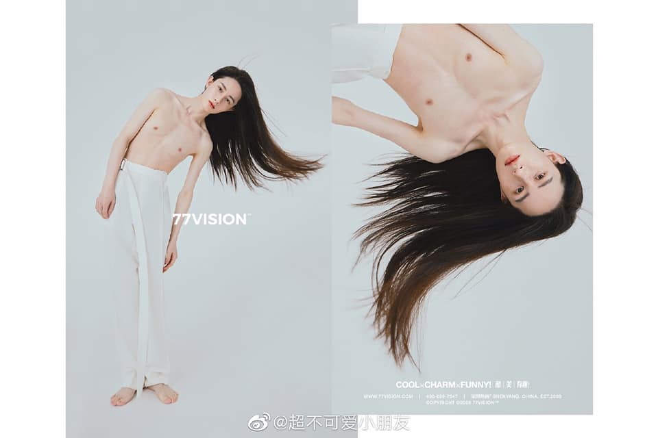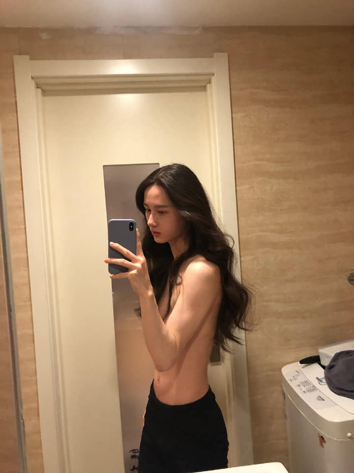 公開された写真には、長いストレートヘアを垂らしたまま、半裸で撮影した彼の姿がいっぱい写っていました。