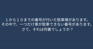 「飛び出すな 車は急に止まれない」という有名な交通安全スローガンがあります。車は急に止まれないだけに、「車は9に止まれない」というのが答えになります。