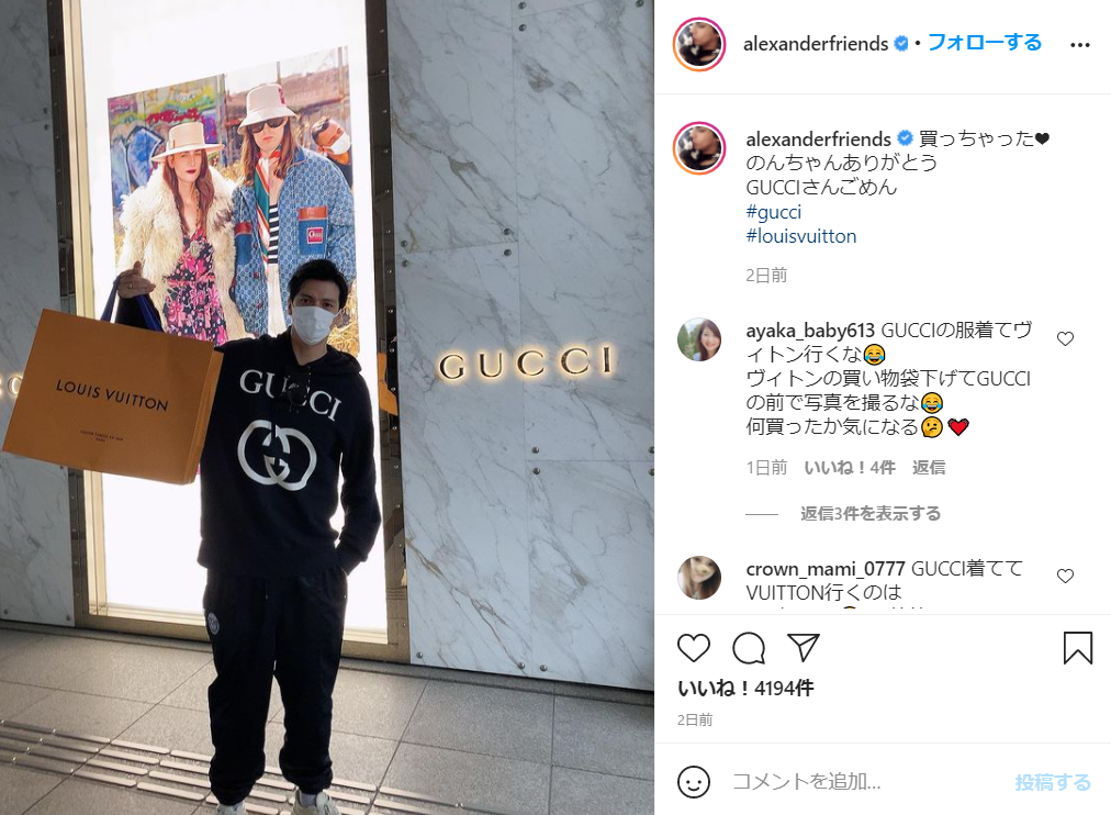 さらに 26日夜には、川崎さんの夫のアレクサンダーさんも、インスタに 川崎さんが買ったiPhoneケースの写真を投稿し、「日本に 2個しか入ってないらしい… 」と明かしていたのでした。