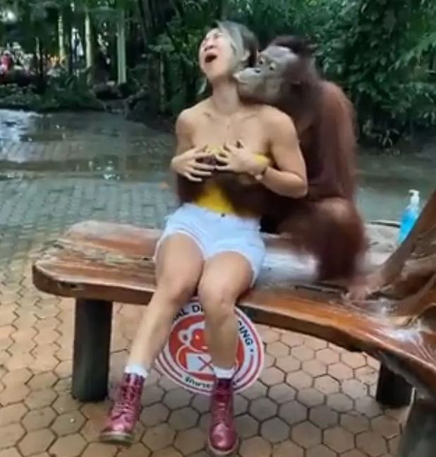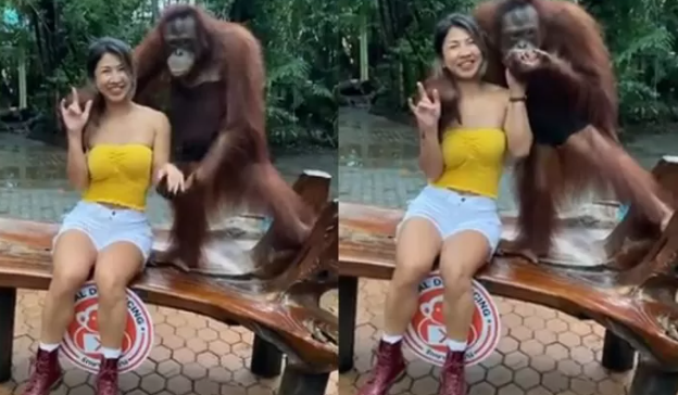 昨年11月18日(現地時間)、ベトナムメディアGAMEKはタイにある動物園で女性観覧客に過激なスキンシップをするオランウータンの映像を公開しました。