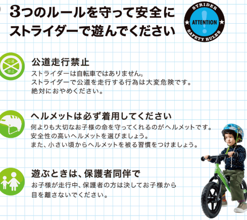 そんな大注目の「ストライダー」ですが、使用する際には要注意しなければならない点があるそうで公式サイトにも次のように記載されています…