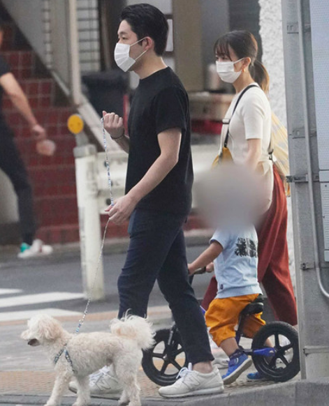 中田さんは妻の福田萌さん、子供2人と近所のスーパーへ買い物に行った様子を同紙にとらえられています。公園で遊んできた帰りでしょうか、中田さんは愛犬を連れ、子どもはミニバイク「ストライダー」らしき乗り物にまたがっています。