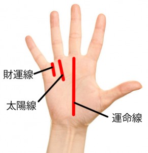「手相の3大幸運線」とは、運命線・太陽線・財運線の3つの線を指します。