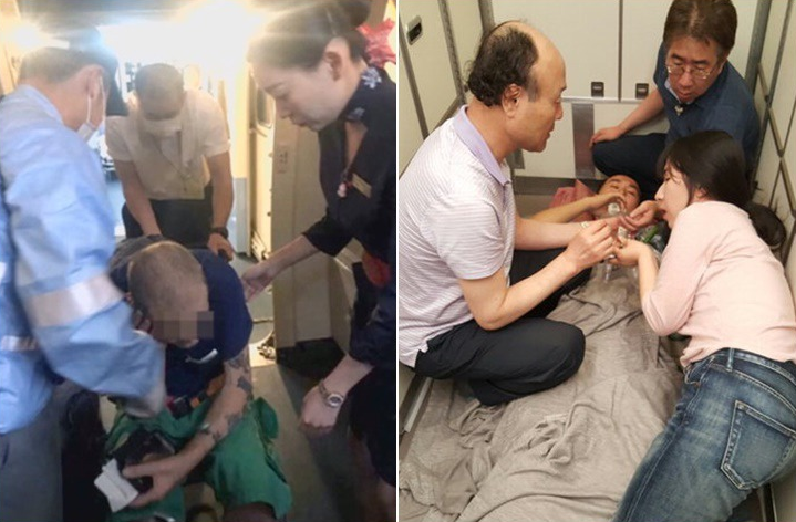 それは中国での出来事。広州からニューヨークに向かう飛行機の中で、70代の老人が大量の汗をかき、体調不良を訴えました。この老人は自身で排尿ができないといいます。目的地に到着するまであと6時間はかかる、そんな状況でした。まず、客室乗務員は老人を床に寝かせました。そして、機内に医師はいないかドクターコールを流します。幸い、機内には2名の医師が乗っていました。