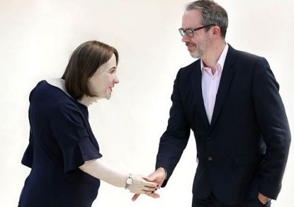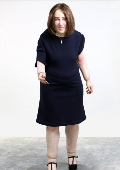 その結果、2040年の人類は、背中は固く突き出し、脚はまるで腫れたように太くなり、お腹は大きく出っ張り、目は赤く充血し、首も不自然に前に突き出すといった、正直言って絶対になりたくない姿勢へと進化していると予測がなされました。こちらの女性は人形でつくられたものですが、実際の身長は170cmであるものの、背中が曲がっていることで10cmは小さく見えます。