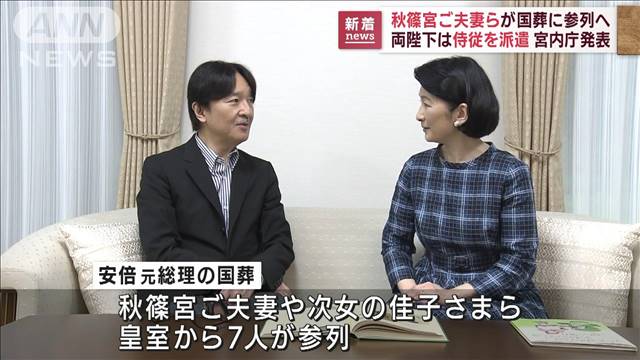 なお、秋篠宮家ご夫婦ら含め7人での参列、天皇、皇后両陛下と上皇ご夫妻は、慣例に従って使者を派遣されるとのことです。