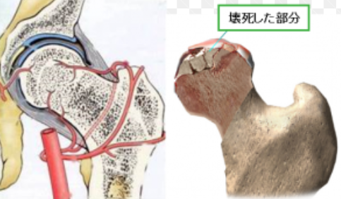 そのため、一度骨が壊死するといずれ再生が追いつかなくなり、もろくなった骨が体の重さに負けて骨折してしまったり、丸い部分が圧潰して変形してしまい、痛みを伴うようになるのです。