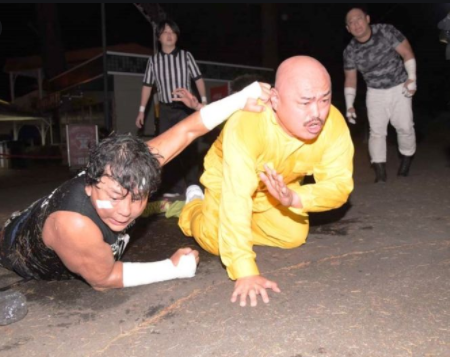 この日、クロちゃんは〝電流爆破デスマッチ〟で、特別立会人を務めたのですが、いつの間にか試合に参加。大仁田厚さんが電流爆破バットをフルスイングし、最終的に、3カウントを奪われ完全KO。