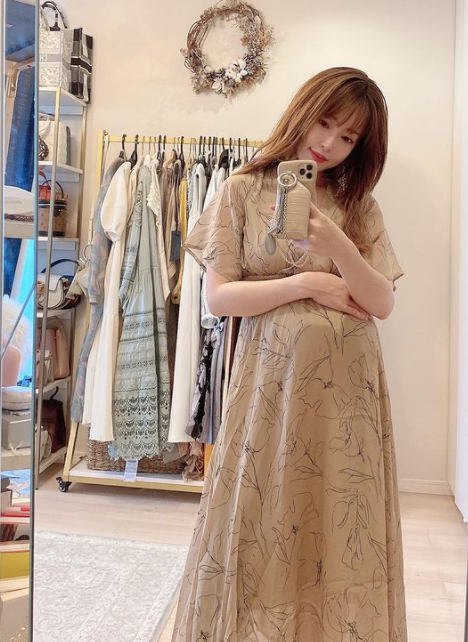 この日の投稿では《あっという間に臨月で前よりもどんどんお腹が大きくなっていきますが、マタニティ服を一枚も購入せずにワンピースで伸びる素材を選んだり胸下切り替えのものをチョイスして、乗り切れています》と明かし、《私の場合あと少しで好きな服を好きなように着れる! と思うとそれもモチベーションになります 体重もあっという間に+10キロ超えてしまいましたが、今は気にせず好きなものを食べて産後ダイエットも楽しもーっと》などと産後のダイエットにも前向きにつづっています。