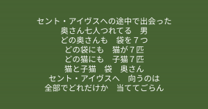 男や奥さん、猫や子猫たちは、「私」がセント・アイヴスに行く途中で出会っただけで、誰もセント・アイヴスには向っていません。