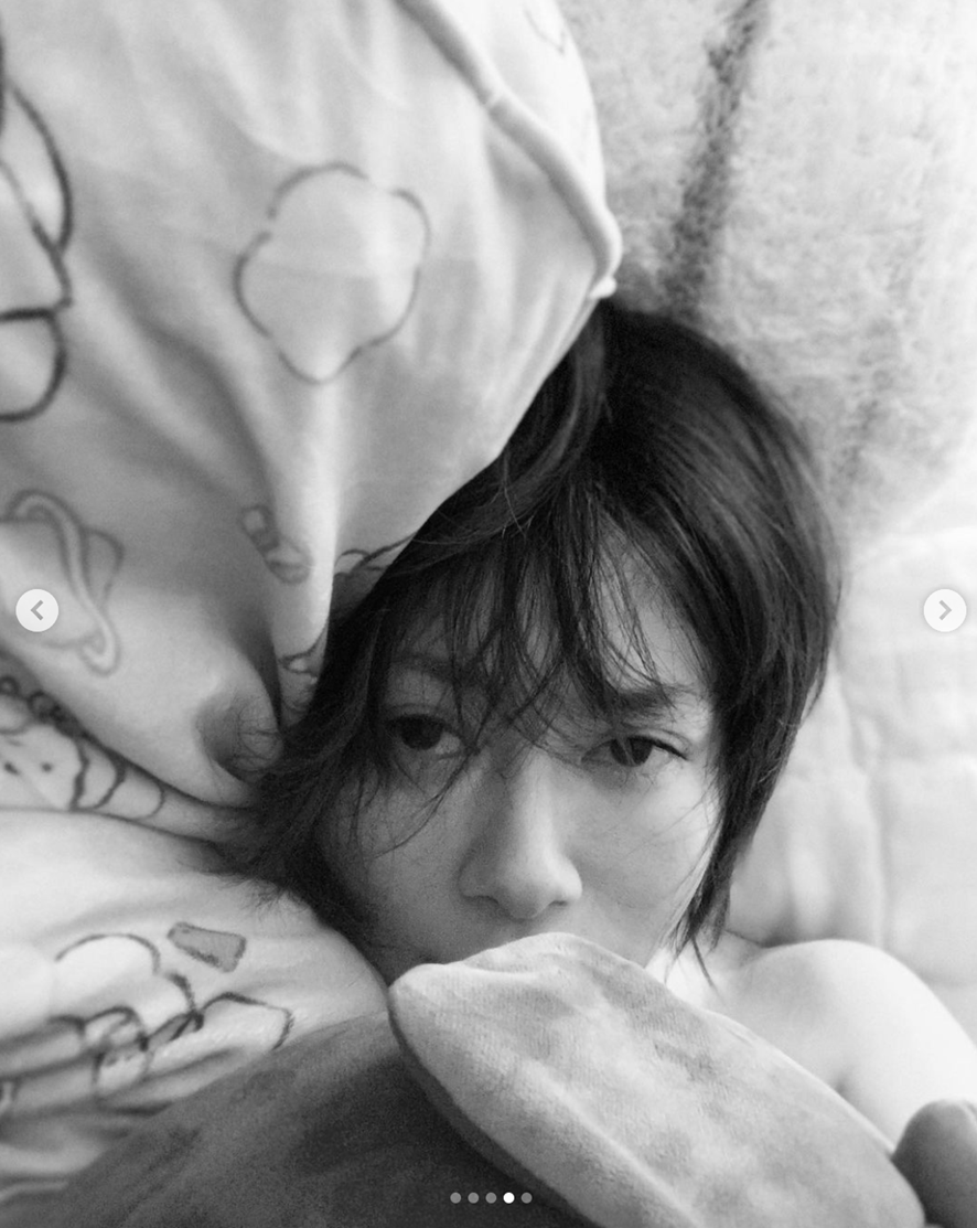 そのコメントと一緒に公開された写真が、真木さんがベッドの上で布団にくるまっている姿で、衣服を身に着けていないように見えます。その姿はまるで行為中に撮った写真のようで、挿入時から始まって、行為後と思わせる写真までありました。1枚目の写真は、真木さんが半目の状態で、快感に体を委ねているかのようも見えます。