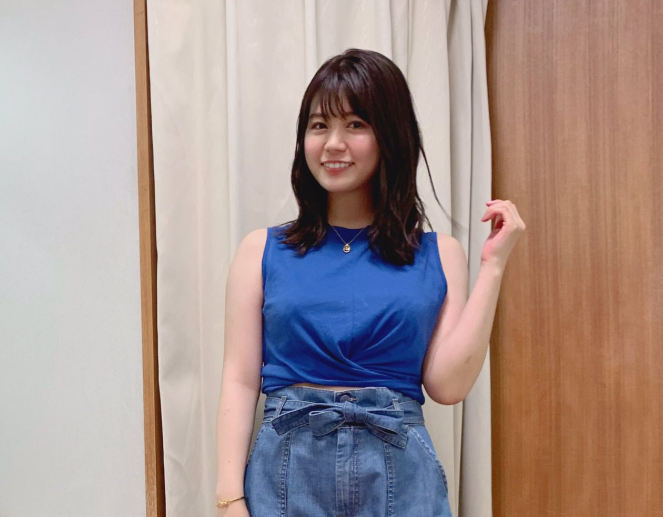 井口がこの日のオンエアで着用していた衣装は、むちむちとしたモッツァレラの二の腕があらわになった、青のノースリーブ衣装でした。